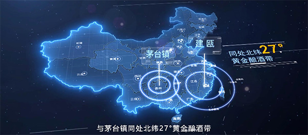 建甌生態(tài)環(huán)境與茅臺鎮(zhèn)地處北緯27°黃金釀酒帶。無霜期長、溫差小、高山環(huán)抱,地形仿佛就是個巨大的酒甑;雨熱同季的氣候,使得建甌的空氣和土壤最適宜釀酒所需的微生物生長。